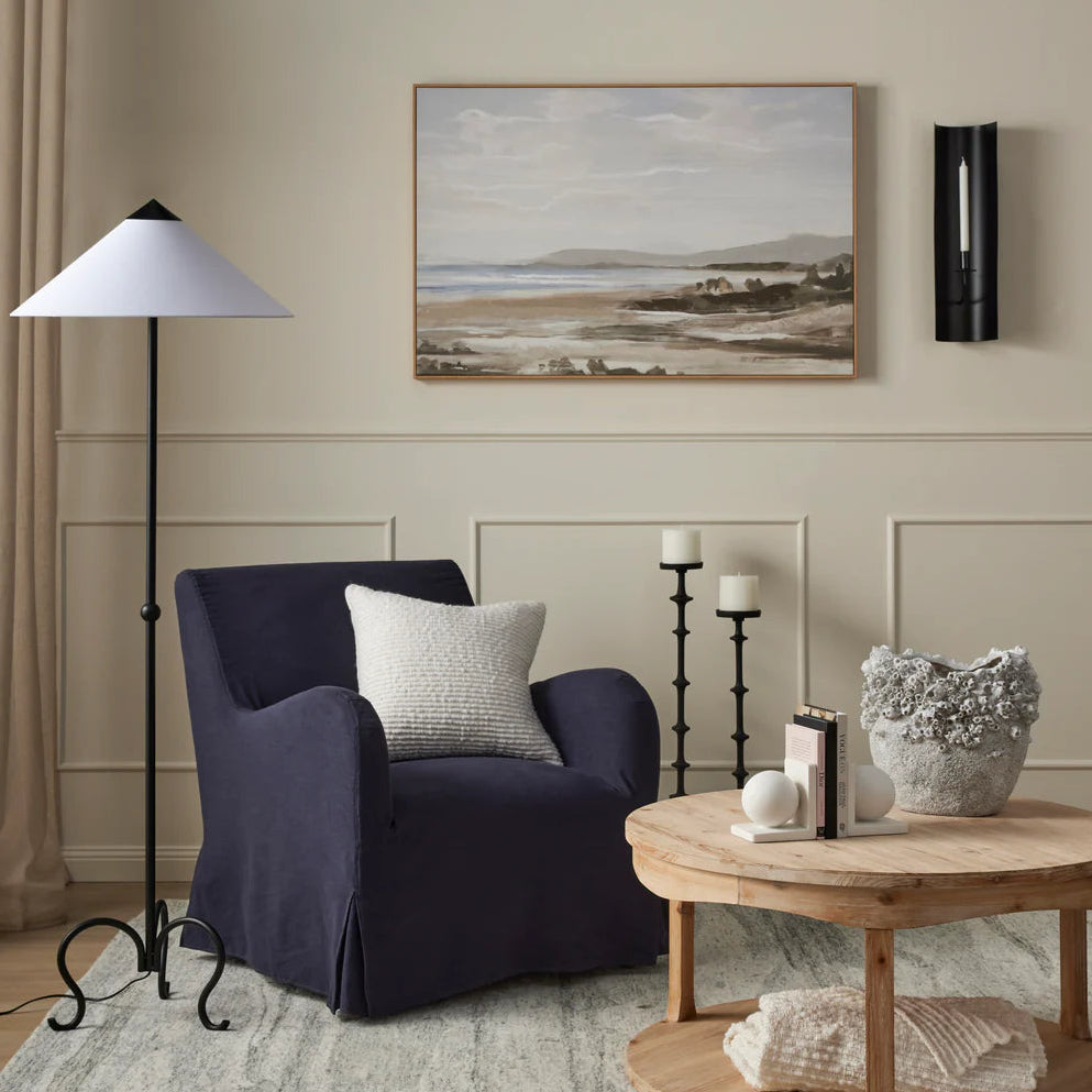 This Apollo Hand Painted Wall Art features a hand-painted coastal landscape scene in calming blue hues encased in a wooden frame. Place it on a wall or entryway anywhere within the home to brighten any space and create a dramatic effect. Enrich your home with this stunning Apollo Hand Painted Wall Art from Amalfi.