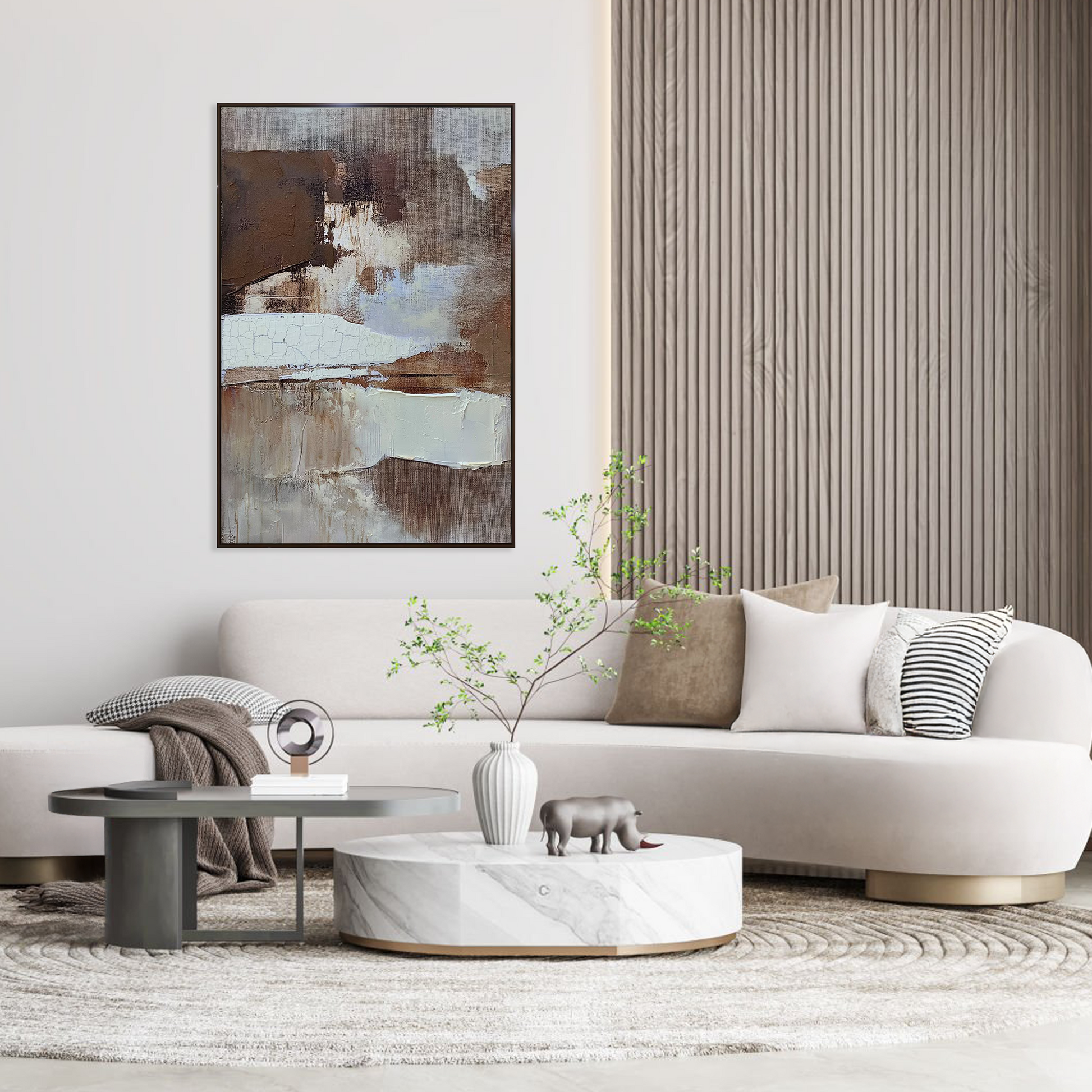 Embrace the soothing beauty of nature with Earthen Calm - a warm and earthy framed canvas that radiates grounded elegance. Featuring soft textures and natural brown hues, this artwork brings a sense of depth and tranquility to any space. Its neutral palette makes it a versatile addition to living rooms, bedrooms, or serene retreats, offering a subtle yet sophisticated charm that complements any interior style.