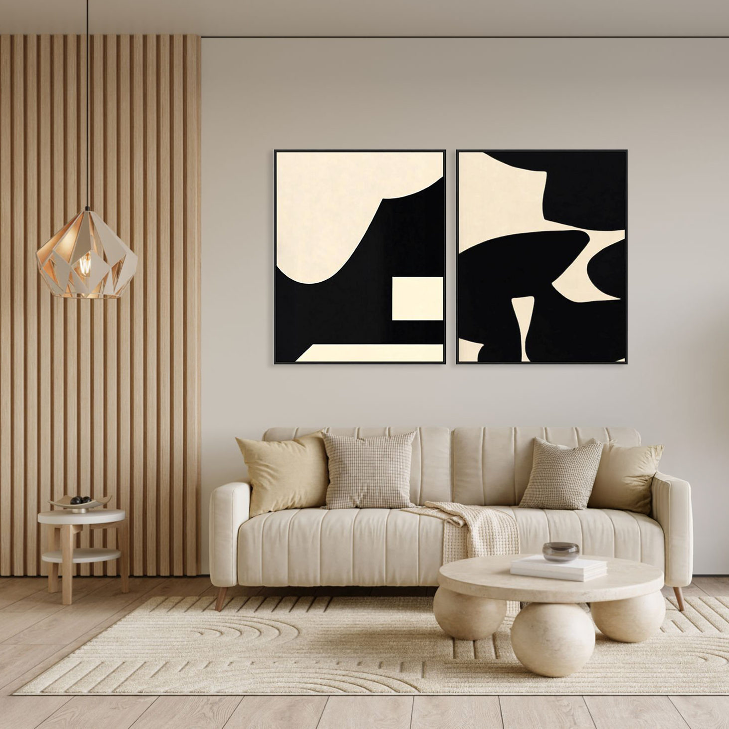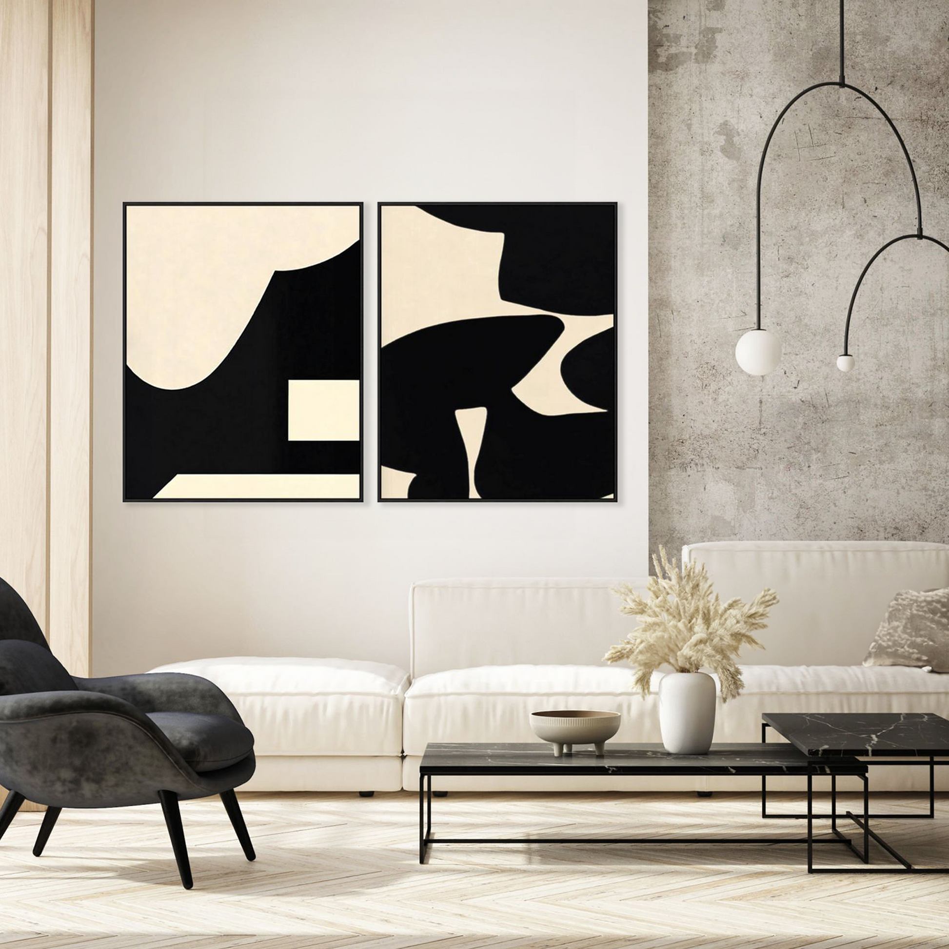 Bold, modern, and effortlessly stylish – In Shape is a striking two-piece monochrome abstract print that brings high-impact visual interest to any interior. Featuring clean lines, organic forms, and a balanced contrast of black and off white, this artwork set is designed to make a statement.