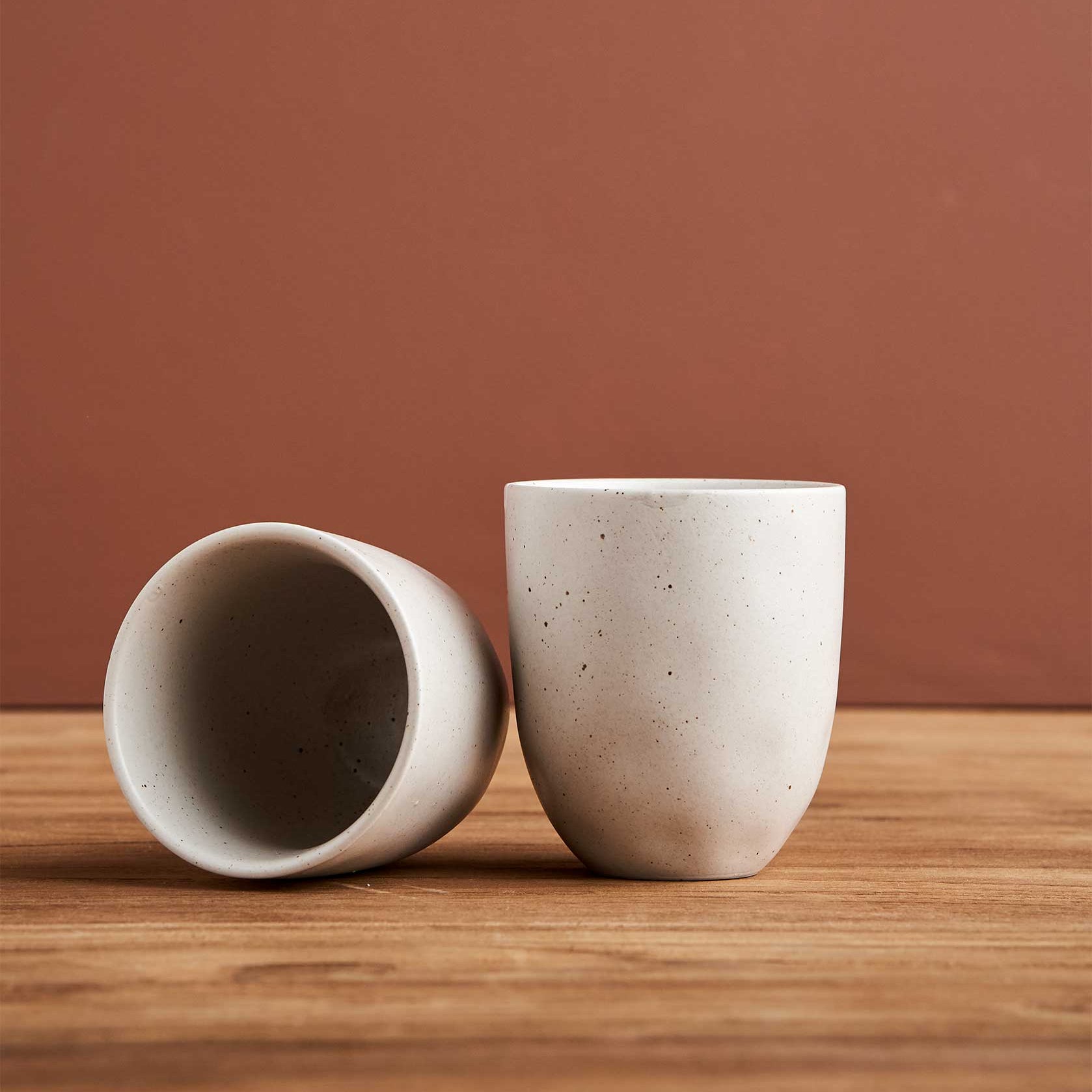 Hospitality grade, high-fired porcelain dinnerware collection in a reactive glaze, Earth Dinnerware is available in black and natural colourway. Sold as a Set of 2 cups. Perfectly suited for a home barista machine.