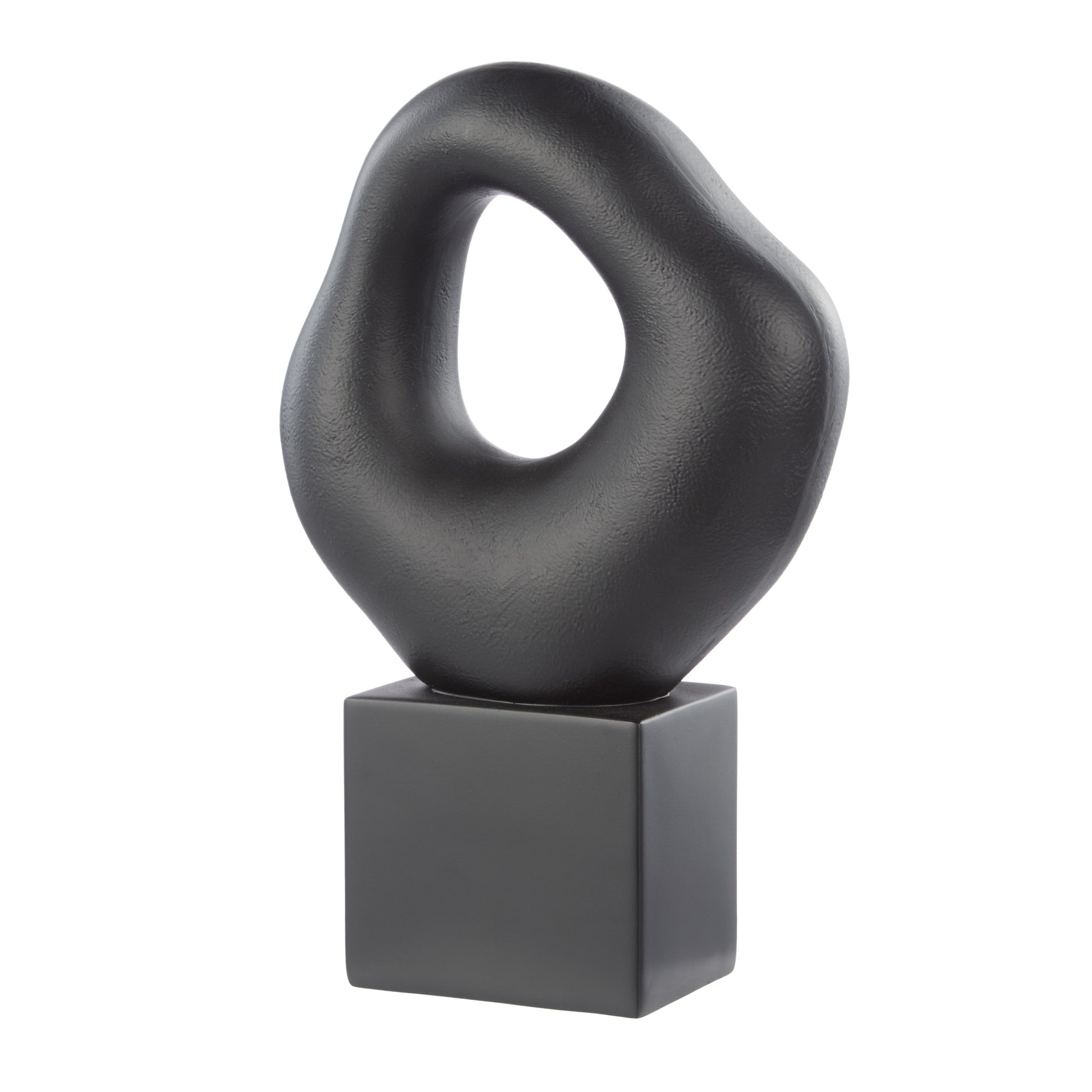 Decorative sculptures are a great way to add charm and character to your space. This Ovum Abstract Sculpture is made from polyresin in the form of an abstract hollow on a stand with a black stone powder finish. Place it on a bookshelf, console or coffee table to liven up your space with a sophisticated aesthetic. Enrich your space with this beautiful Ovum Abstract Sculpture from Amalfi.