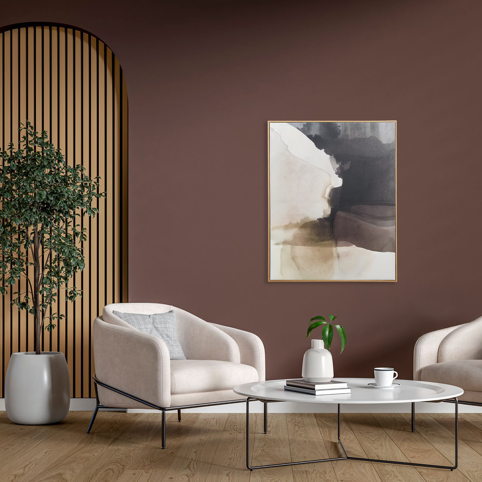 An abstract canvas composition inspired by sakura motifs, this wall art employs a sophisticated palette of ivory, pebble, and warm brown tones to establish understated elegance. The muted colour scheme creates visual depth while maintaining versatility across interior spaces. Ideal for entryways, living areas, or feature walls, this piece delivers subtle sophistication and contemplative aesthetic appeal to any room.